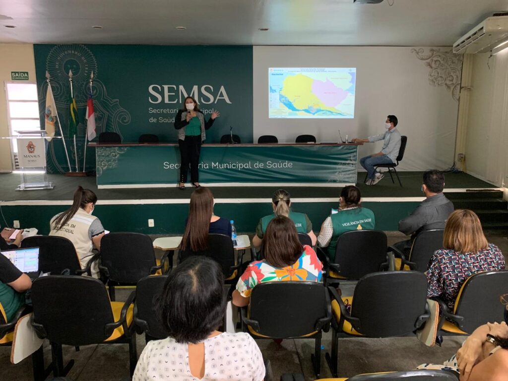 As ações adotadas pela Prefeitura de Manaus, por meio da Secretaria Municipal de Saúde (Semsa), no enfrentamento da pandemia de Covid-19 na capital amazonense foram tema de um novo evento com a participação de representantes da Organização Pan-Americana de Saúde (Opas), da Secretaria de Estado de Saúde (SES-AM) e da Fundação de Vigilância em Saúde (FVS/AM), realizado nesta quinta-feira, 26/11, no auditório da Semsa, localizada no bairro Adrianópolis, zona Centro-Sul de Manaus.