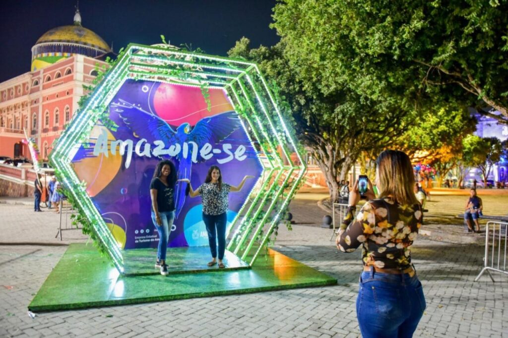 Foi instalado também um cenário instagramável, com a marca amazone-se, no Largo de São Sebastião, Centro, para manauaras e turistas registrarem seus passeios e compartilharem em suas redes sociais.
