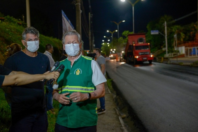 As obras de requalificação viária na avenida Rodrigo Otávio, bairro do Japiim, zona Sul, estão chegando a sua etapa final e são realizadas à noite para não agravar o trânsito no local. O prefeito de Manaus, Arthur Neto, aproveitou o início da madrugada desta quarta-feira, 9/12, para acompanhar o andamento da obra, que tem um total de cinco quilômetros de extensão, totalizando 10 quilômetros lineares de asfalto de qualidade nas duas pistas.