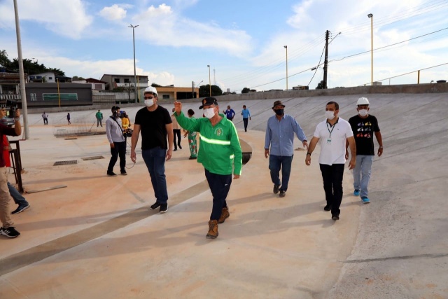 Enquanto estava a caminho do velódromo, o prefeito passou para vistoriar o espaço esportivo, no mesmo conjunto, que teve obra iniciada há 15 dias e já está com mais de 70% de execução. A obra conta com uma quadra de areia, e outra quadra esportiva, para futsal, basquete e vôlei, além do vestiário e espaço de paisagismo.