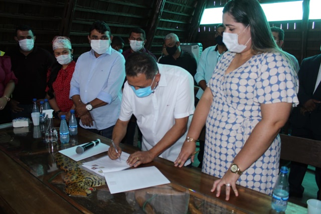 O prefeito Anderson Sousa e a prefeita Patrícia Lopes, assinaram nesta sexta-feira, 11, o termo de cooperação técnica para ações nas áreas limítrofes dos municípios de Rio Preto da Eva e Presidente Figueiredo. A assinatura do termo aconteceu na Igreja de Cavaco, um dos principais pontos turísticos do município de Rio Preto, e contou com a presença de secretários municipais e vereadores dos dois municípios. “A partir de agora iremos trabalhar juntos nas áreas limítrofes para levar mais saúde, educação, infraestrutura, assistência social e sobretudo desenvolvimento para as centenas de famílias que vivem nessas localidades. Fico grato pela parceria com a prefeita Patrícia Lopes e tenho certeza que unidos iremos fazer muito pelos nossos municípios”. Destacou o prefeito Anderson Sousa. As comitivas visitaram a Unidade de Saúde Dr Hamilton Cidade e Hospital Thomé de Medeiros Raposo, conhecendo assim a estrutura de saúde do município e o Centro Administrativo (Prefeitura) que foi inaugurado no início do ano pelo prefeito Anderson Sousa.