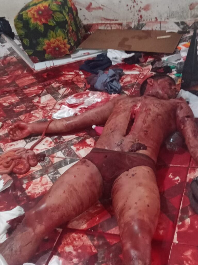 Eversson foi brutalmente morto a facadas. O corpo está com um corte profundo no pescoço, nos braços e com ainda com a barriga aberta, com as tripas para fora.